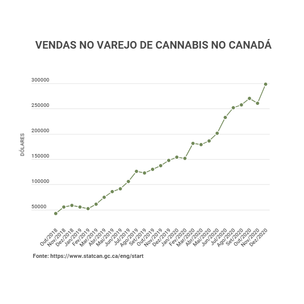 No Canadá, segundo país do mundo a legalizar o uso adulto, ficando atrás apenas do Uruguai, e primeiro do G7 (grupo dos países mais industrializados do mundo, também composto por Alemanha, Estados Unidos, França, Itália, Japão e Reino Unido), há um crescimento vigoroso no consumo da erva, com forte aumento no período de isolamento, quando as pessoas buscaram se munir de produtos que lhes fariam falta.