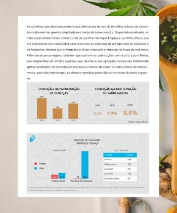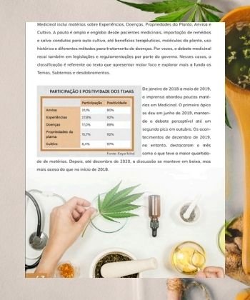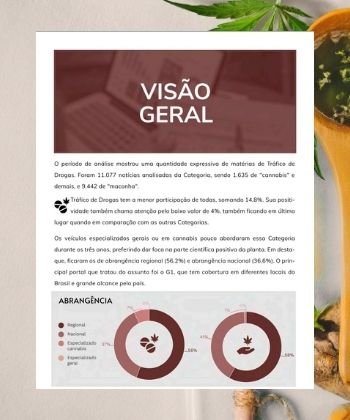Acompanhamos mais de 200 veículos durante três anos (2018 – 2020), captamos mais de 200 mil matérias relacionadas à maconha e consolidamos um relatório completo dos últimos acontecimentos, analisados e classificados com 95% de assertividade em mais de cem categorizações diferentes. Além disso, exploramos as principais marcas, empresas e instituições citadas pela imprensa, e quem são os agentes, porta-vozes e influenciadores mais relevantes do meio.